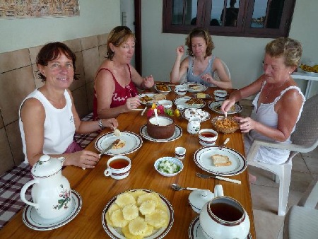 Genieße die Abendstimmung bei einem Glas Wein oder Bier! Hier blickst du in eins von unseren vier kleinen Gästezimmern. Das Bett mit großem Moskitonetz schützt vor nächtlichen "Plagegeistern". Frühstück in unserem "Café Meerblick": ein gemütlicher und genussvoller neuer Tagesbeginn! Einen faszinierenden Blick aufs Meer hast du auch von der Dachterrasse, die wir als FKK-Bereich eingerichtet haben. Weitere Informationen kannst du unter www.solluna.de abrufen. Persönliche Informationen bekommst du unter 02051-24159 oder durch Anfragen per Mail: Dieter.Rolle@gmx.de | ![]() | |||||||
